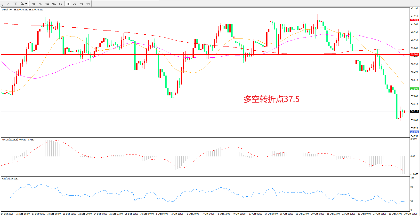 周四(10月29日),欧洲多地新冠疫情重燃,多国宣布更严格的疫情管理,严重冲击了原油需求前景,同时OPEC成员国利比亚在四周内将提升产量至100万桶/日,美国WTI原油再度陷入暴跌,收报36.24美元/桶,创五个月新低。