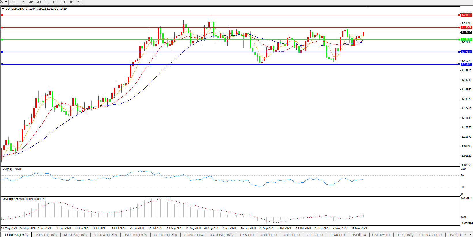 交易策略:1.1800上方看涨,目标1.1900、1.2000