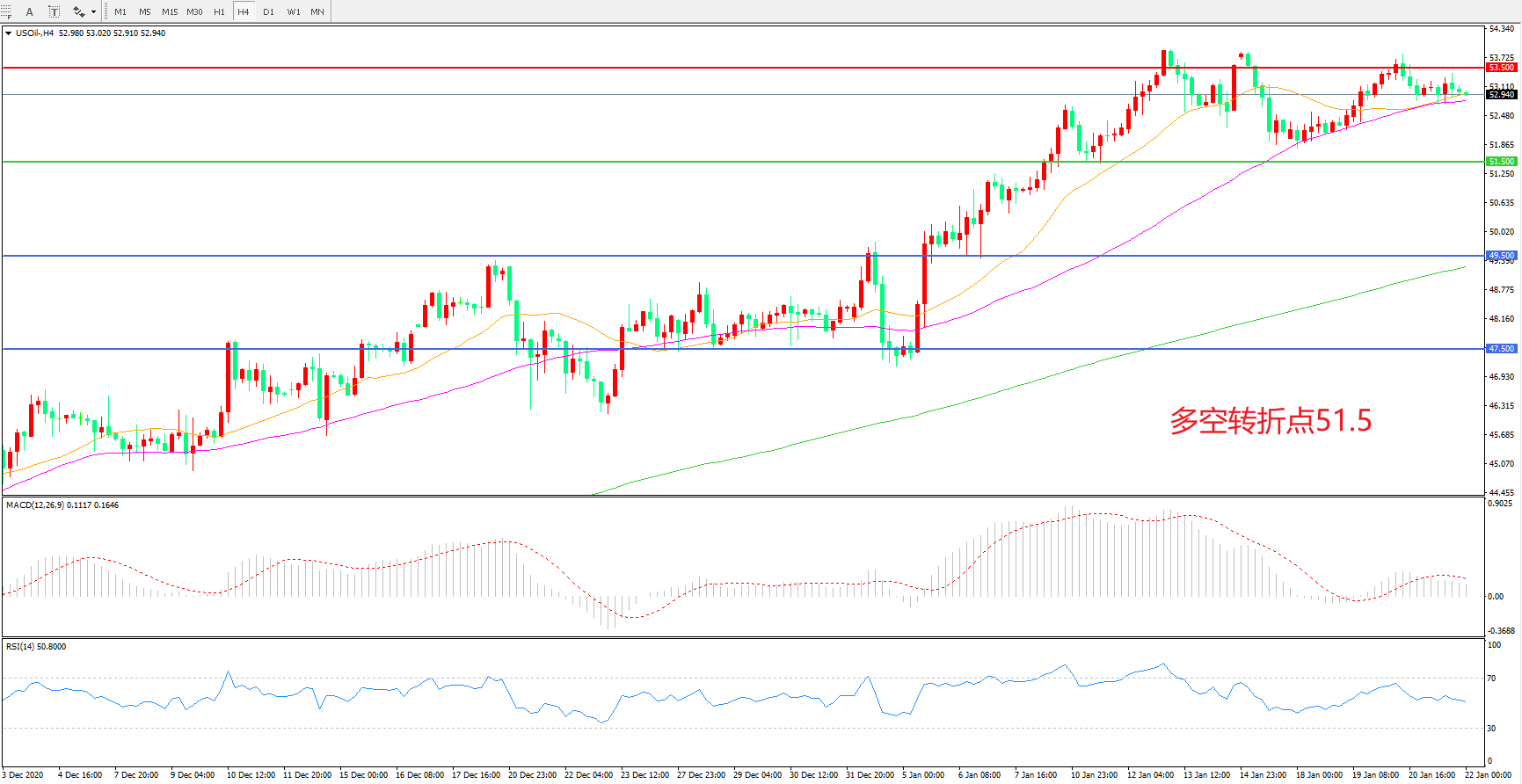 多空转折点:51.50