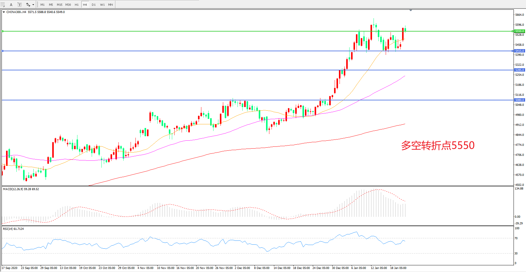 多空转折点:5550.00