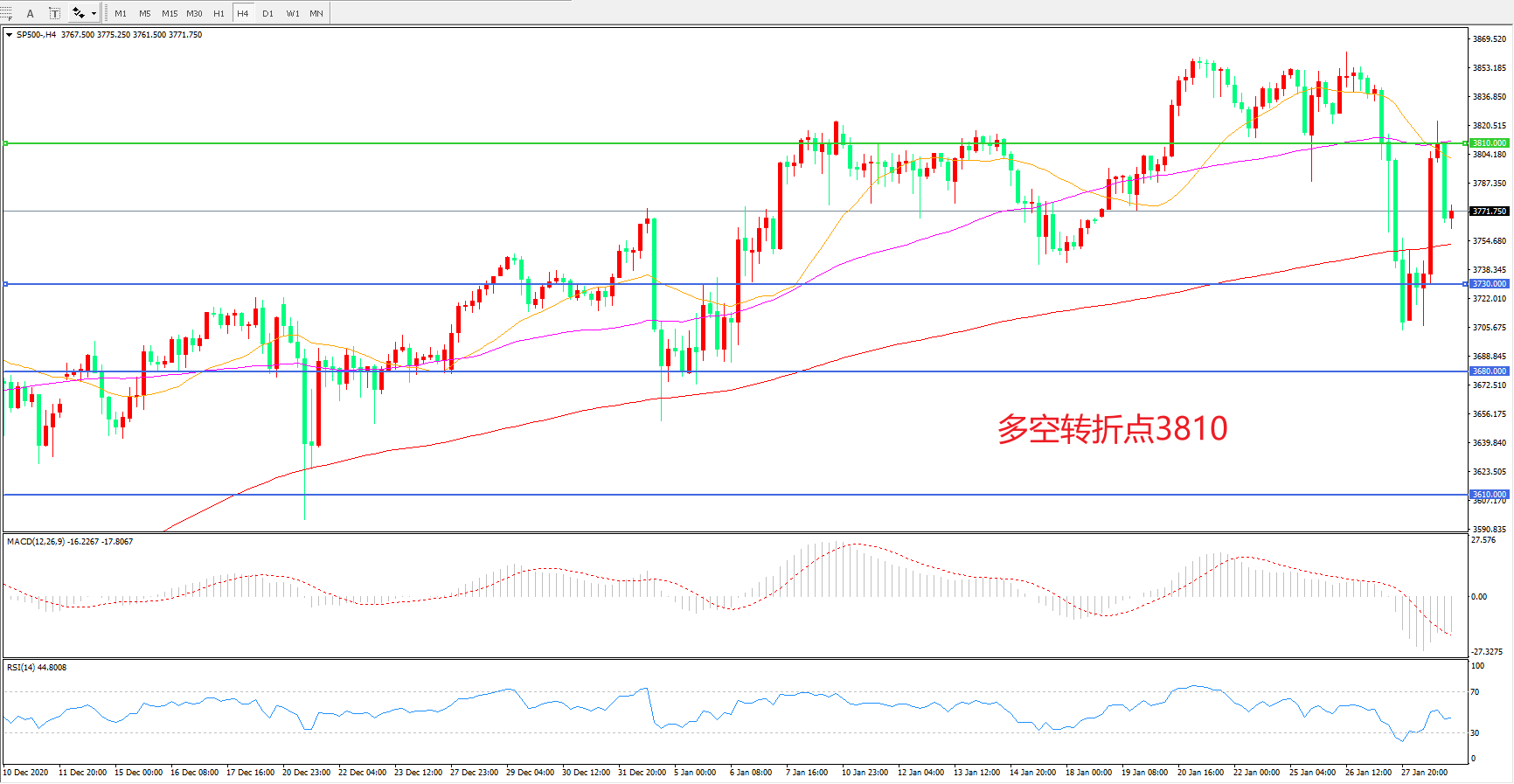 交易策略:在3810.00之下看跌,目标3730.00    3680.00