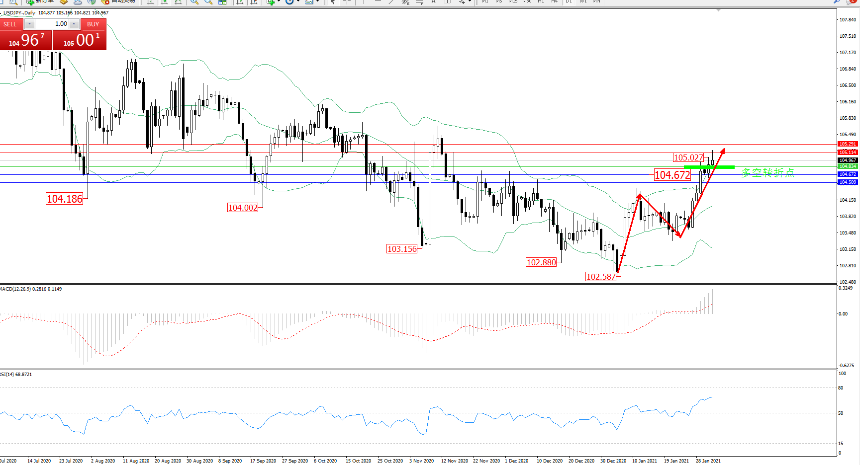 多空转折点:104.834