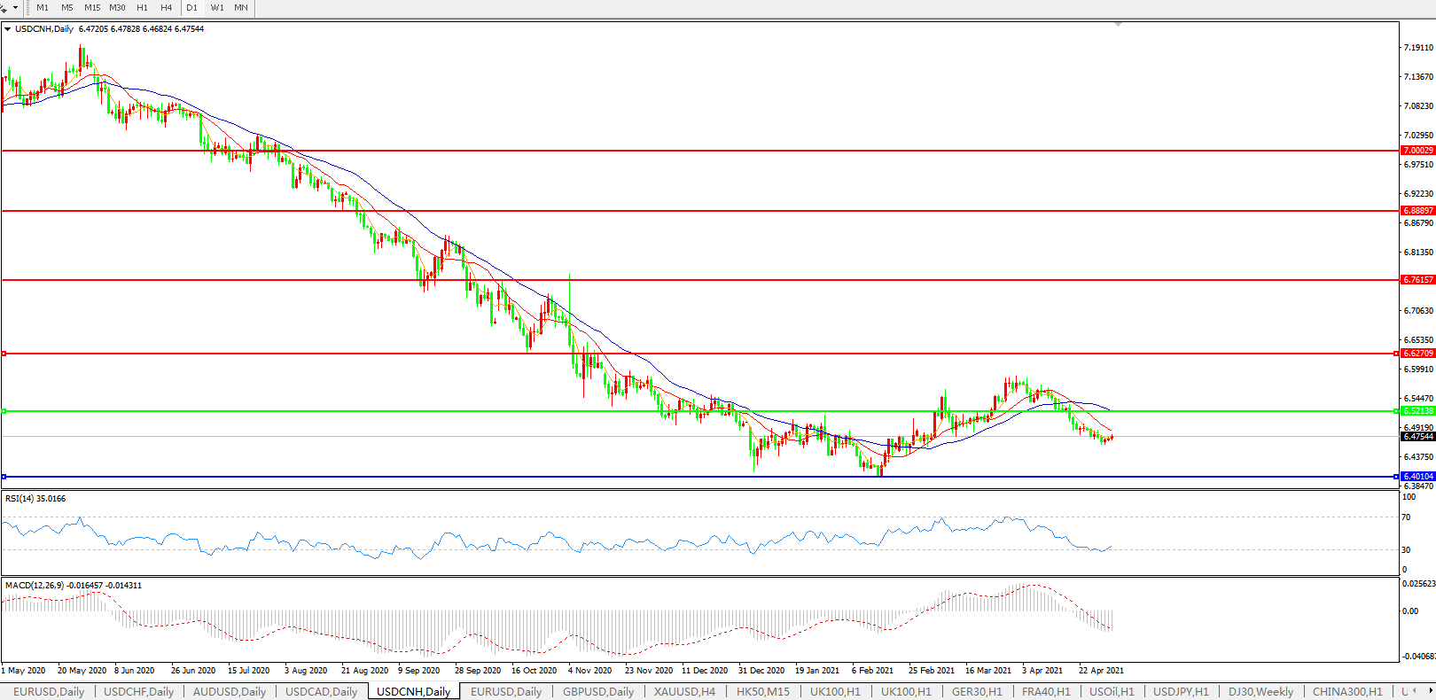 美元兑人民币USDCNH    日线图: