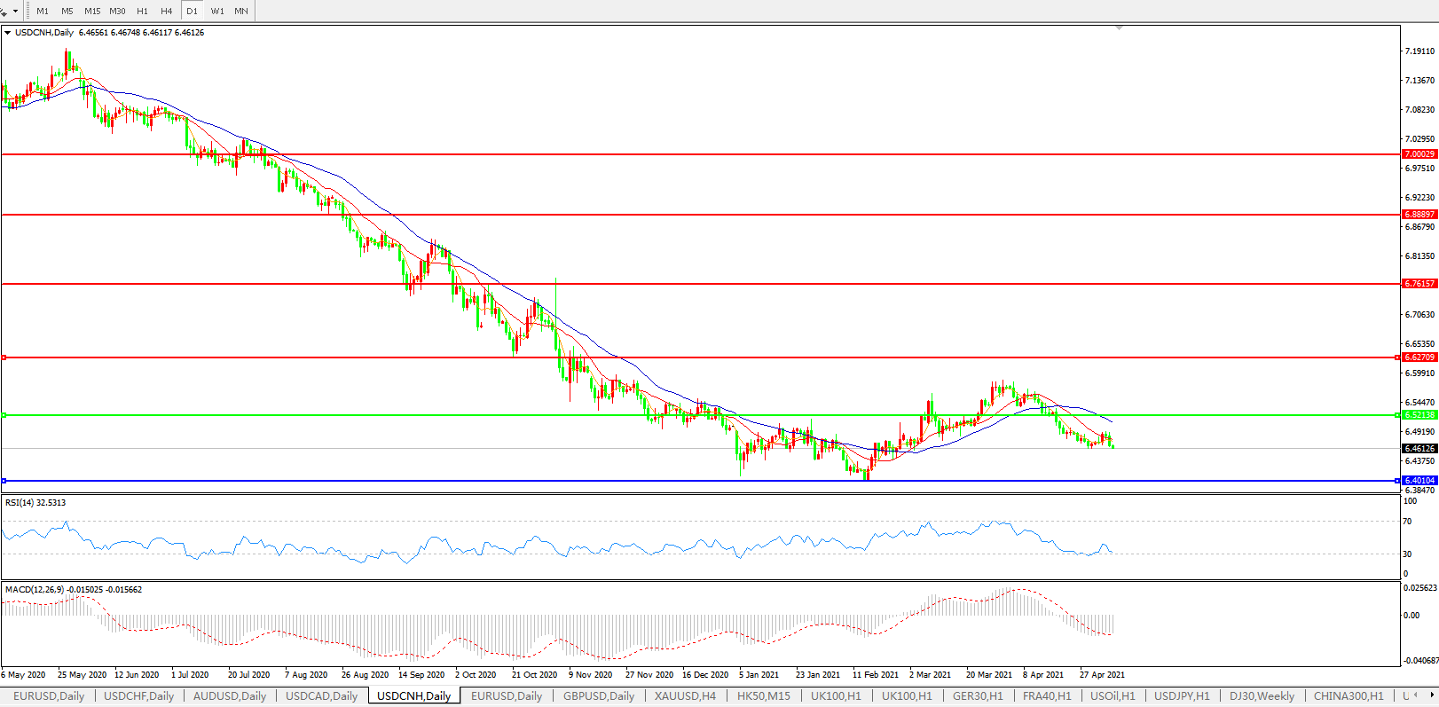 备选策略: 在6.5200之上,看涨,目标价位为6.6270,然后为6.7615。