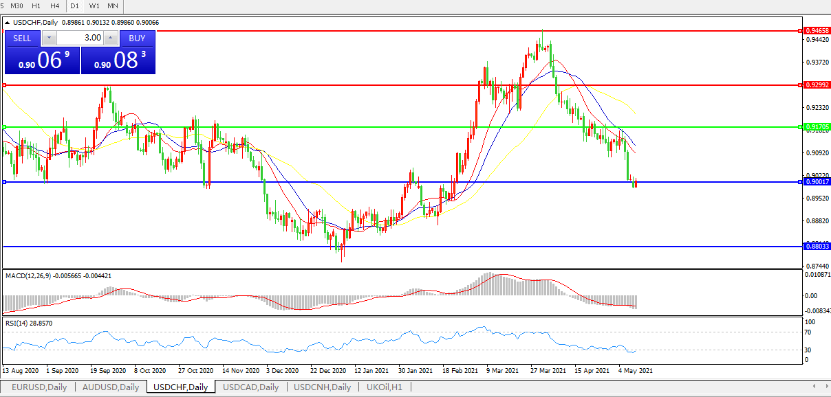 美元兑瑞郎USDCHF 日线图: