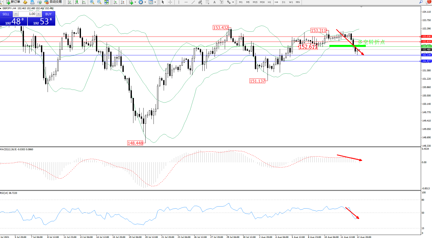 交易策略:152.611下方看跌,目标152.239、151.977