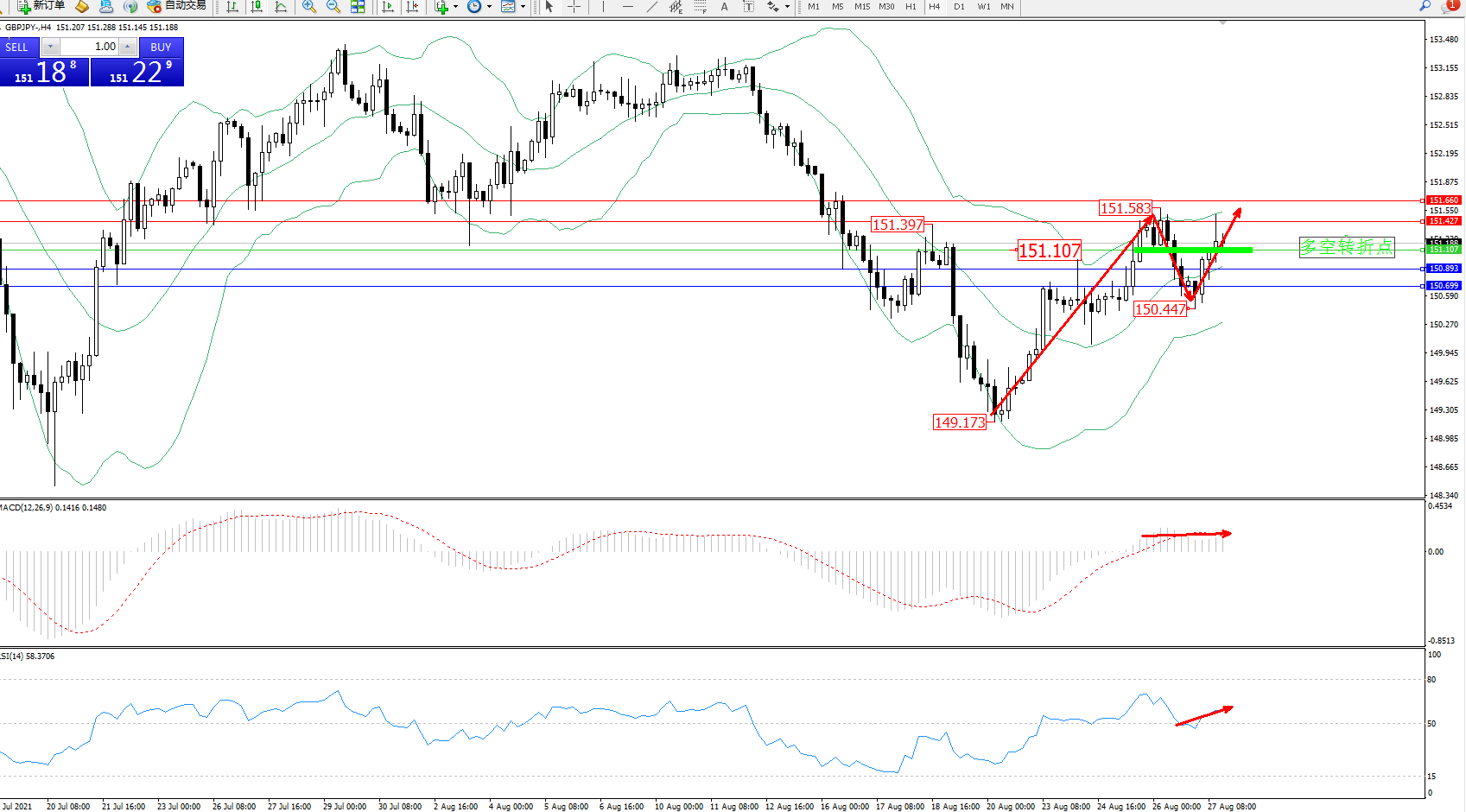 英镑美元GBPUSD ——4小时K线图显示: