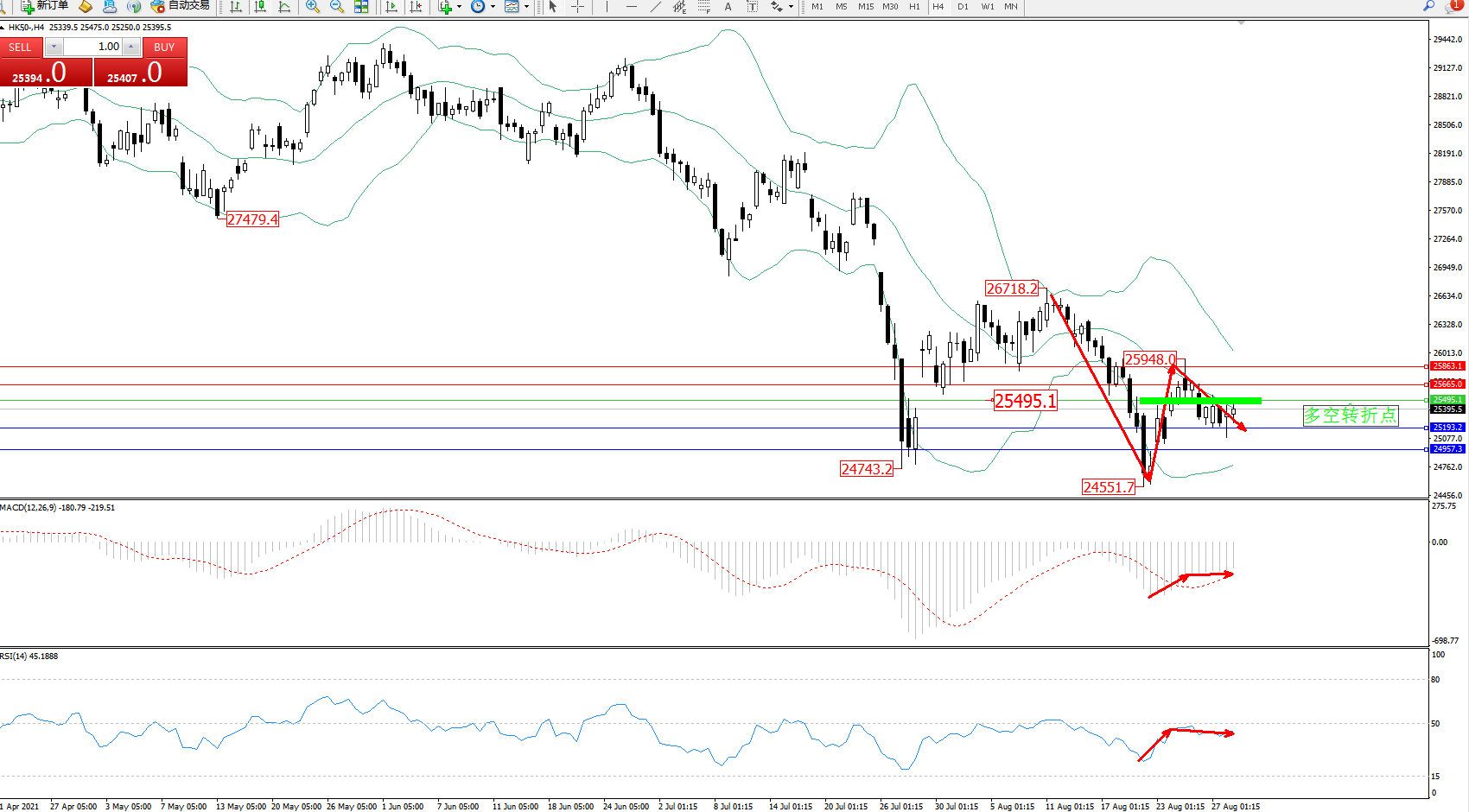 恒指HK50 ——4小时K线图显示: