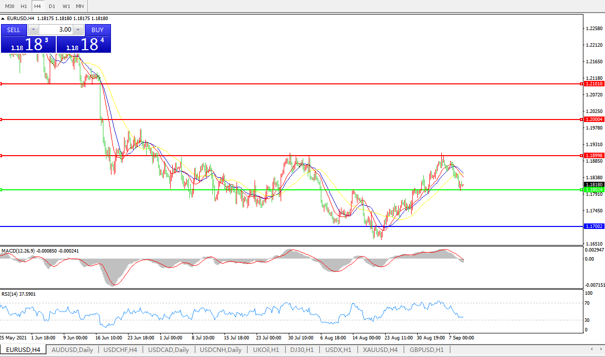 备选策略:1.1800下方看跌,目标1.1700、1.1600