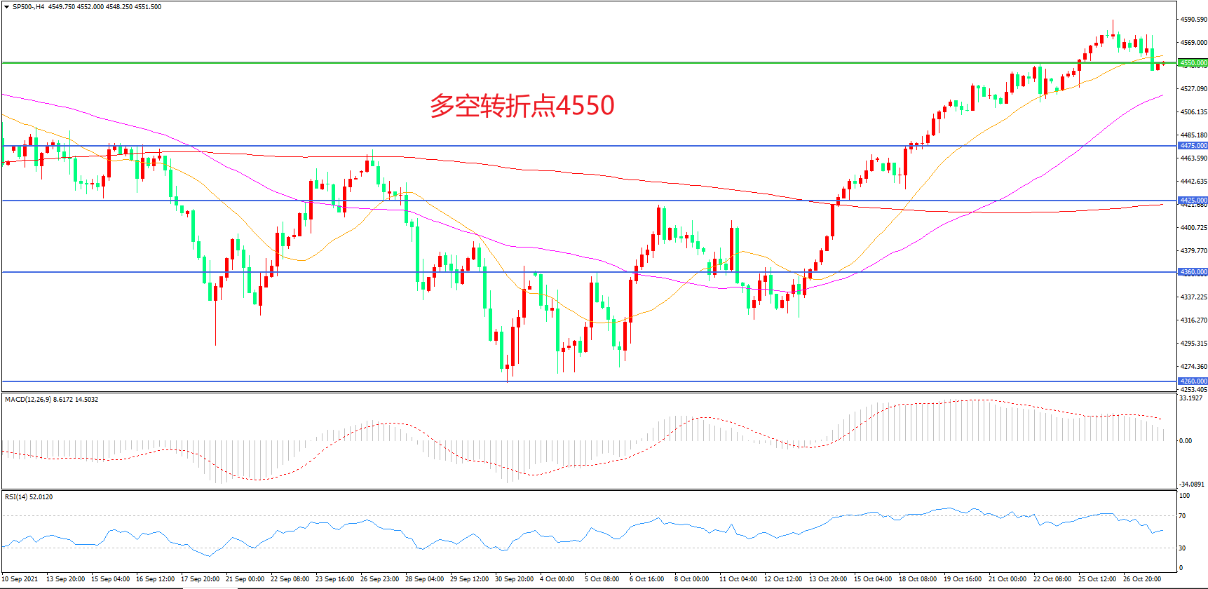多空转折点:4550.00