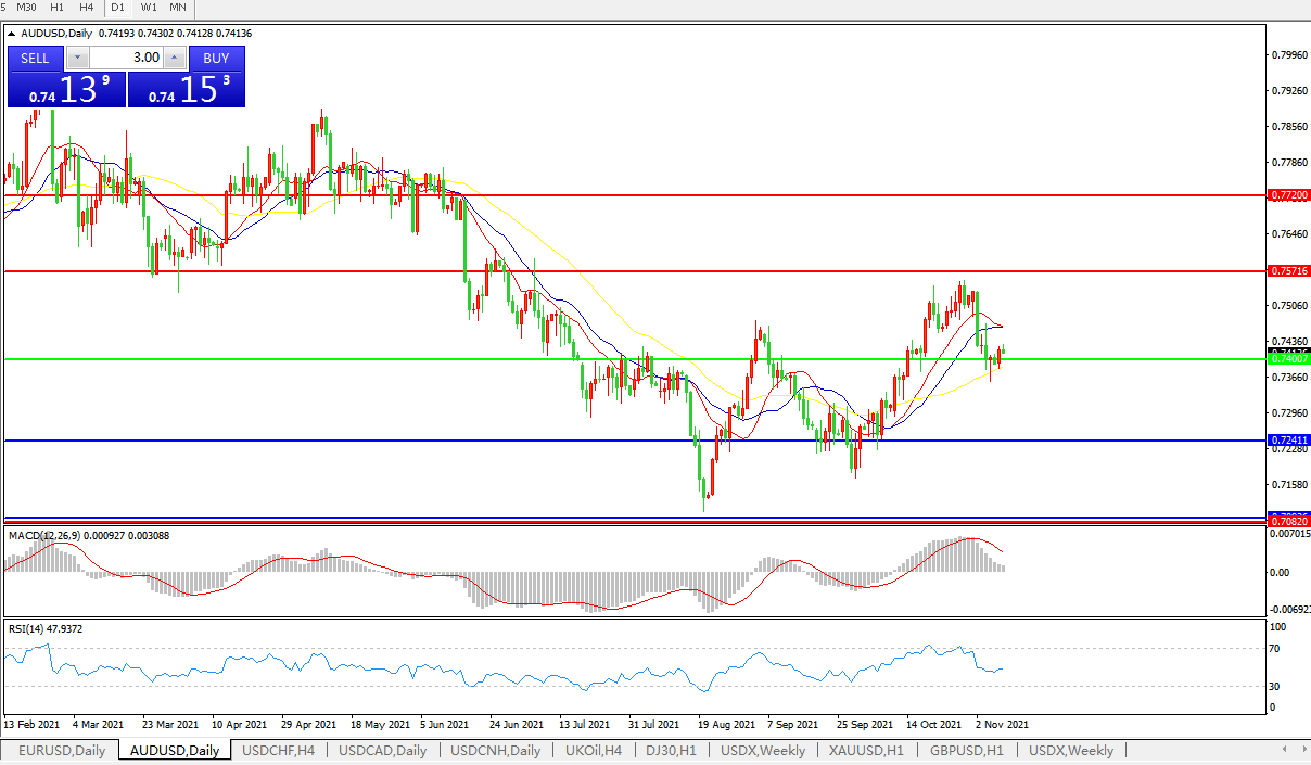 交易策略:0.7400下方看跌,目标0.7240、0.7080