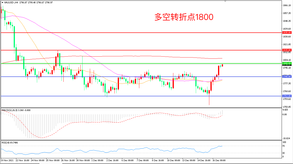 交易策略:在1800.00之上看涨,目标1815.00 1835.00