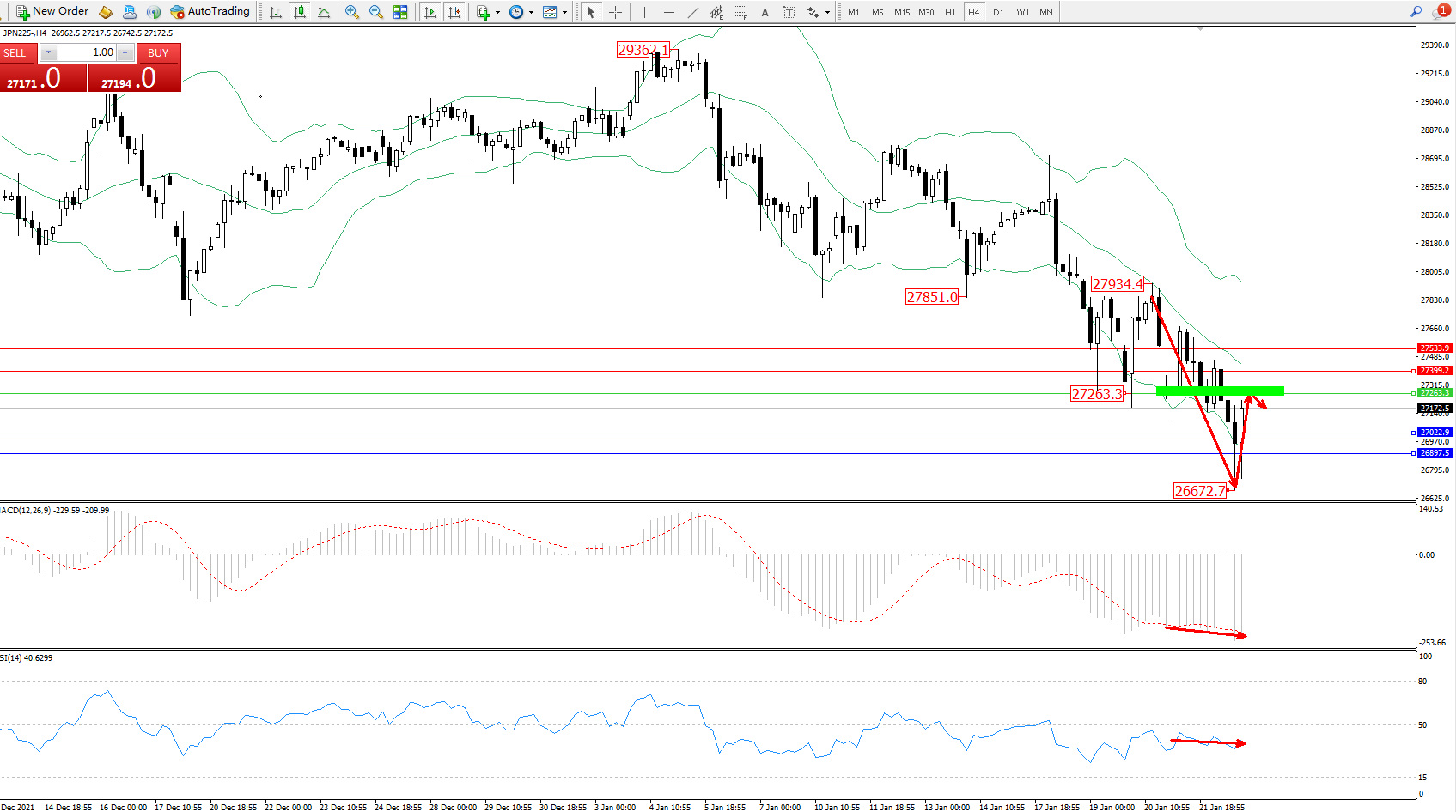 日经指数JPN225——4小时K线图: