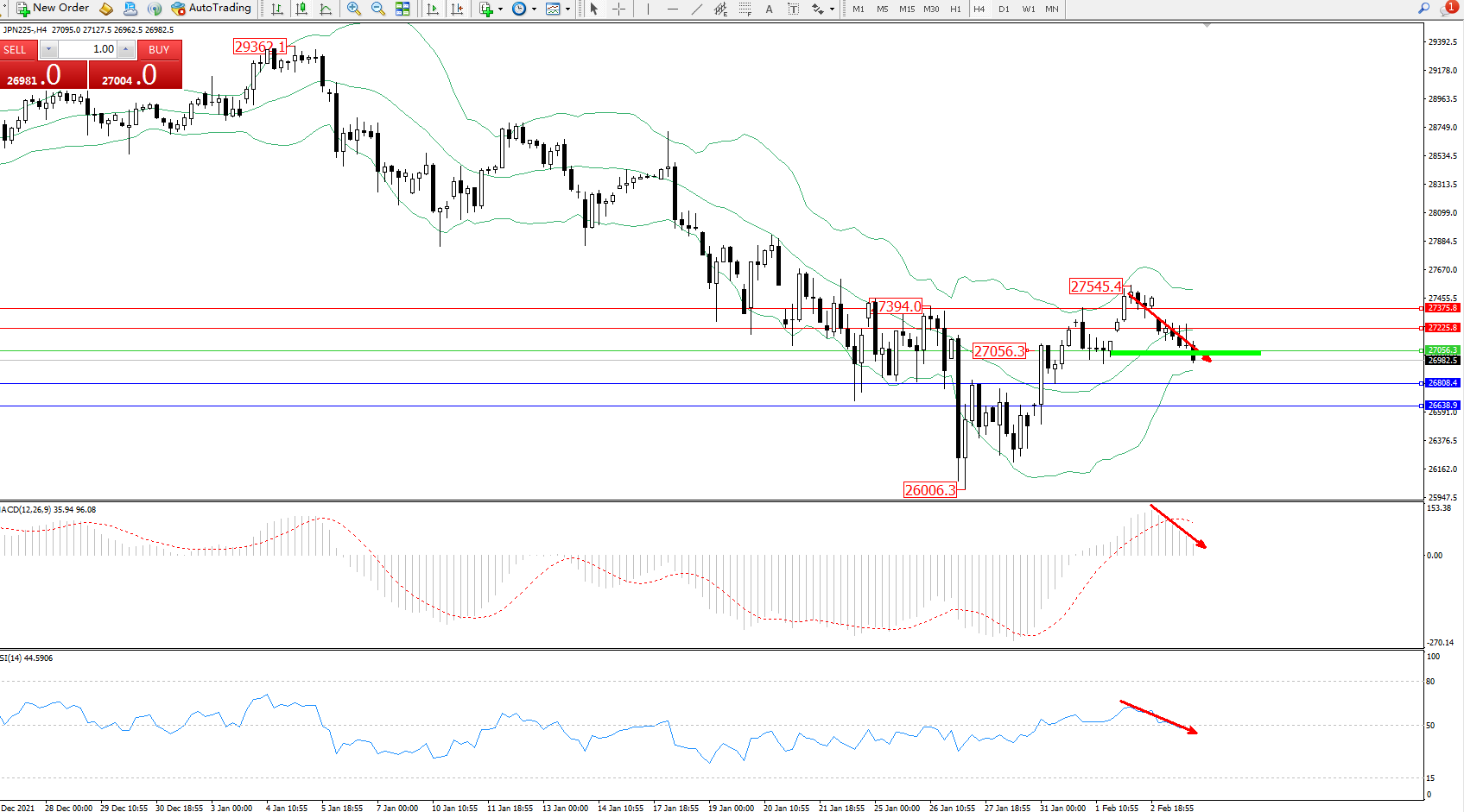 日经指数JPN225——4小时K线图显示: