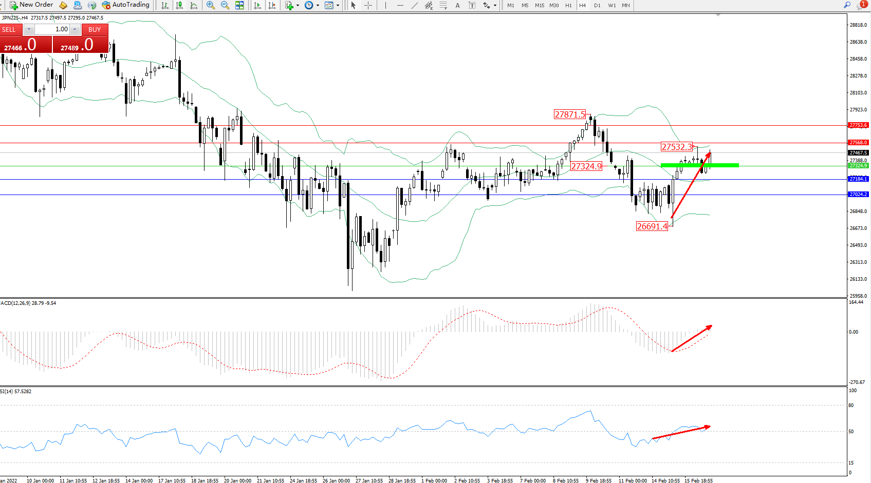 日经225指数2月16日(周三)收盘上涨609.31点,涨幅2.27%,报27474.50点。调查显示,日本制造业信心在2月降至11个月低点,因抗疫举措和原材料成本上涨造成冲击。制造商对未来三个月的乐观程度低于1月,而服务业前景保持不变。该月度调查追踪备受关注的日本央行短观季度调查。调查中经理们对奥密克戎变体迅速蔓延及其对自家业务运营和需求的影响表示担忧。调查共访问502家大中型公司,有244家作出了回应。一家运输设备制造商的经理在2月1日至10日的调查中说,“新冠病毒传播和半导体短缺让我们的零件供应前景蒙阴,”2月制造业景气判断指数从1月的正17降至正6,触及去年3月以来最低。2月非制造业景气判断指数从1月的正8降至正3,为五个月以来首降。