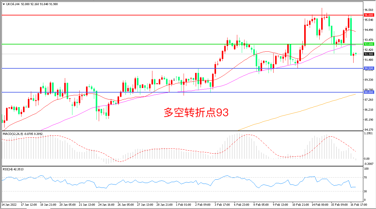 交易策略:在93.00之下看跌,目标90.50        88.00