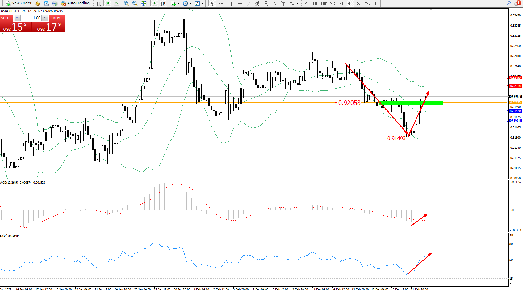 美元瑞郎USDCHF——4小时K线图显示: