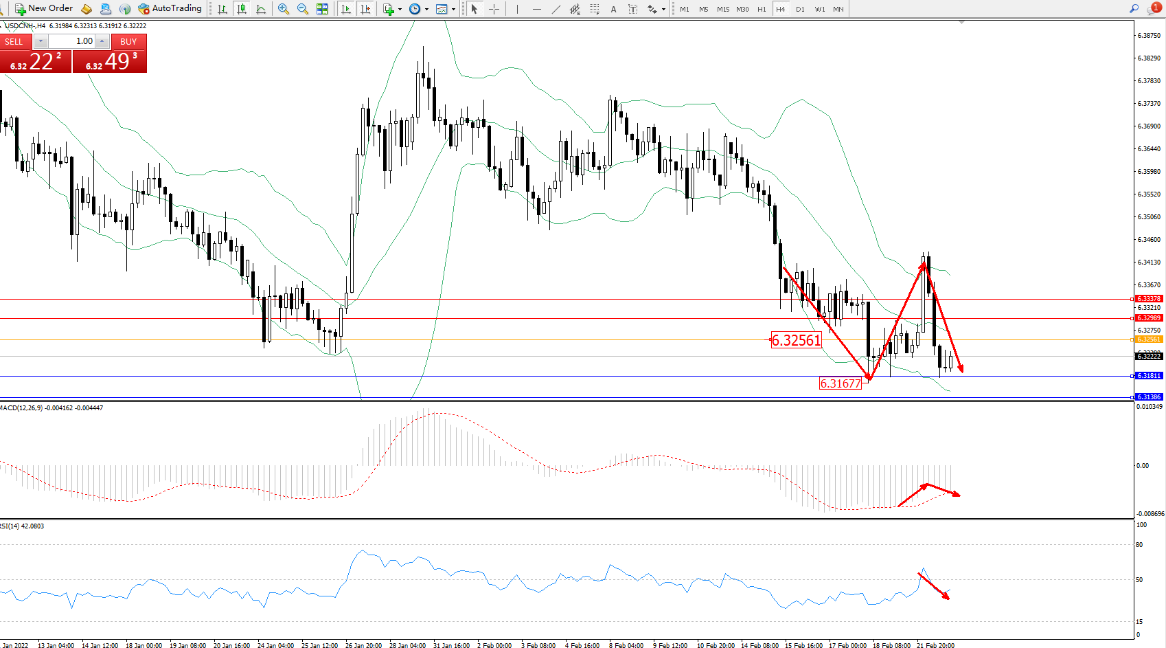 交易策略:6.32561下方看跌,目标6.31811、6.31386