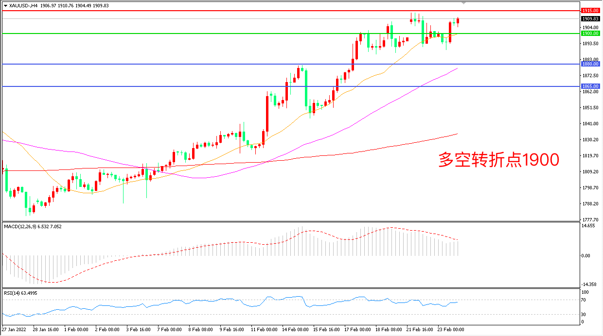 交易策略:在1900.00之上看涨,目标1915.00 1930.00