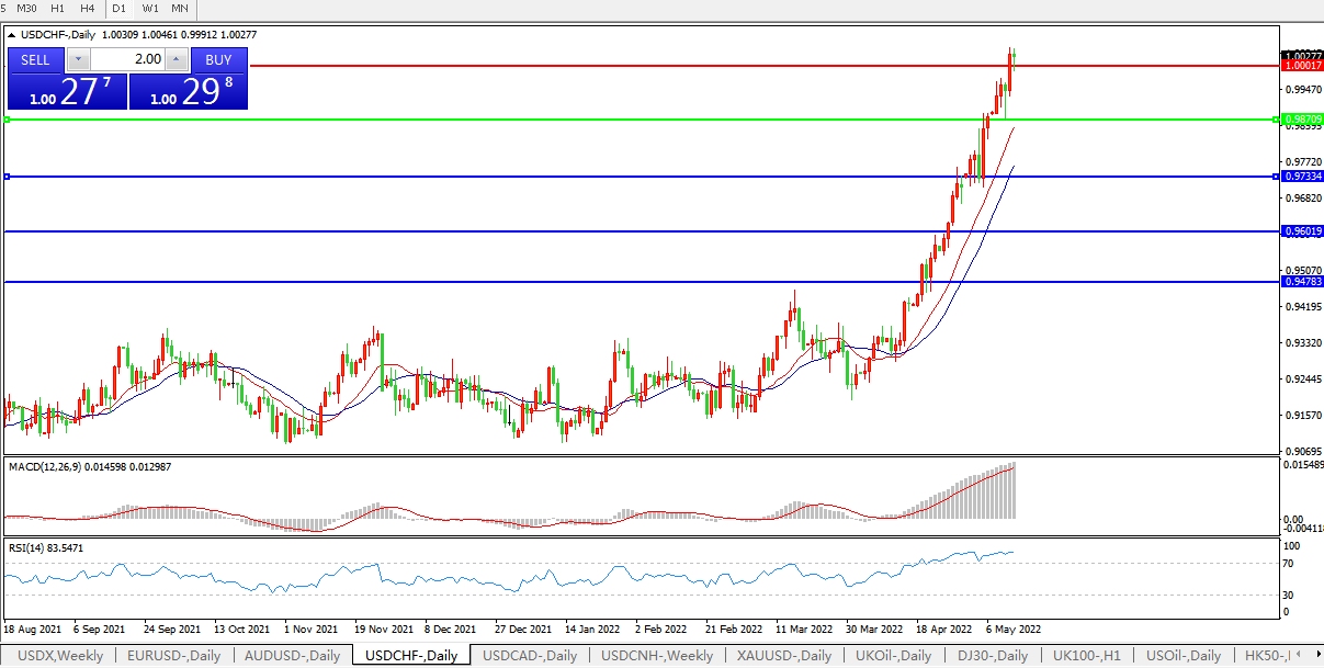 美元兑瑞郎USDCHF 日线图: