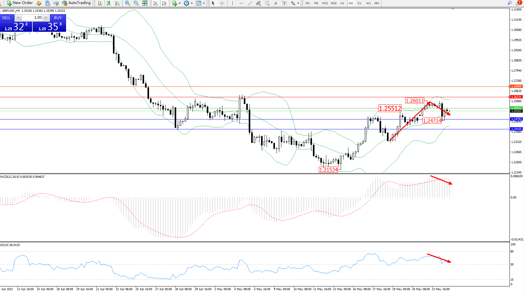 英镑美元GBPUSD ——4小时K线图显示: