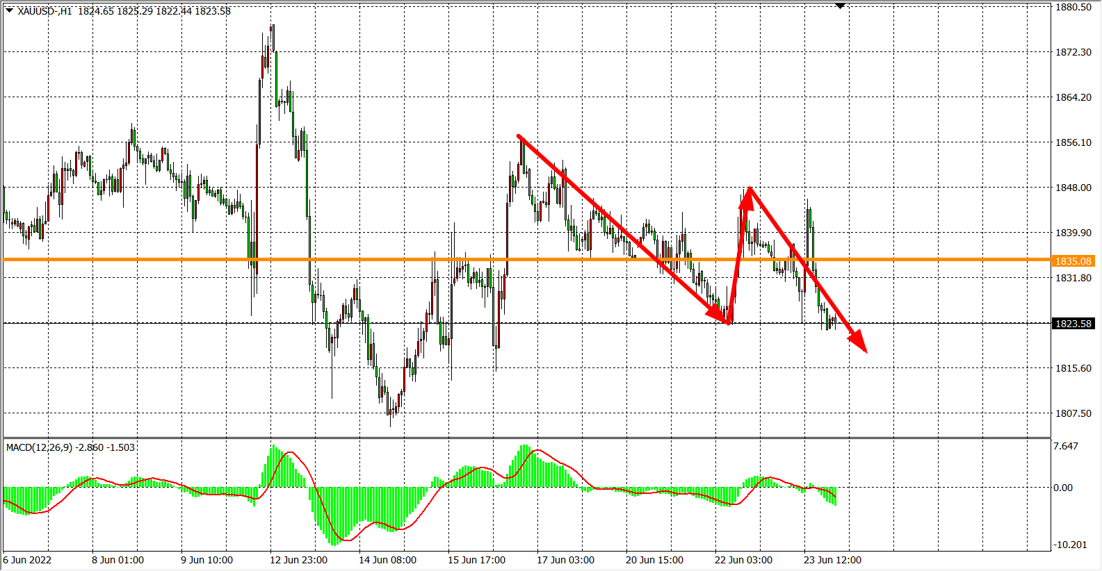 交易策略:在1835.00之下看跌,目标1815.00 1800.00