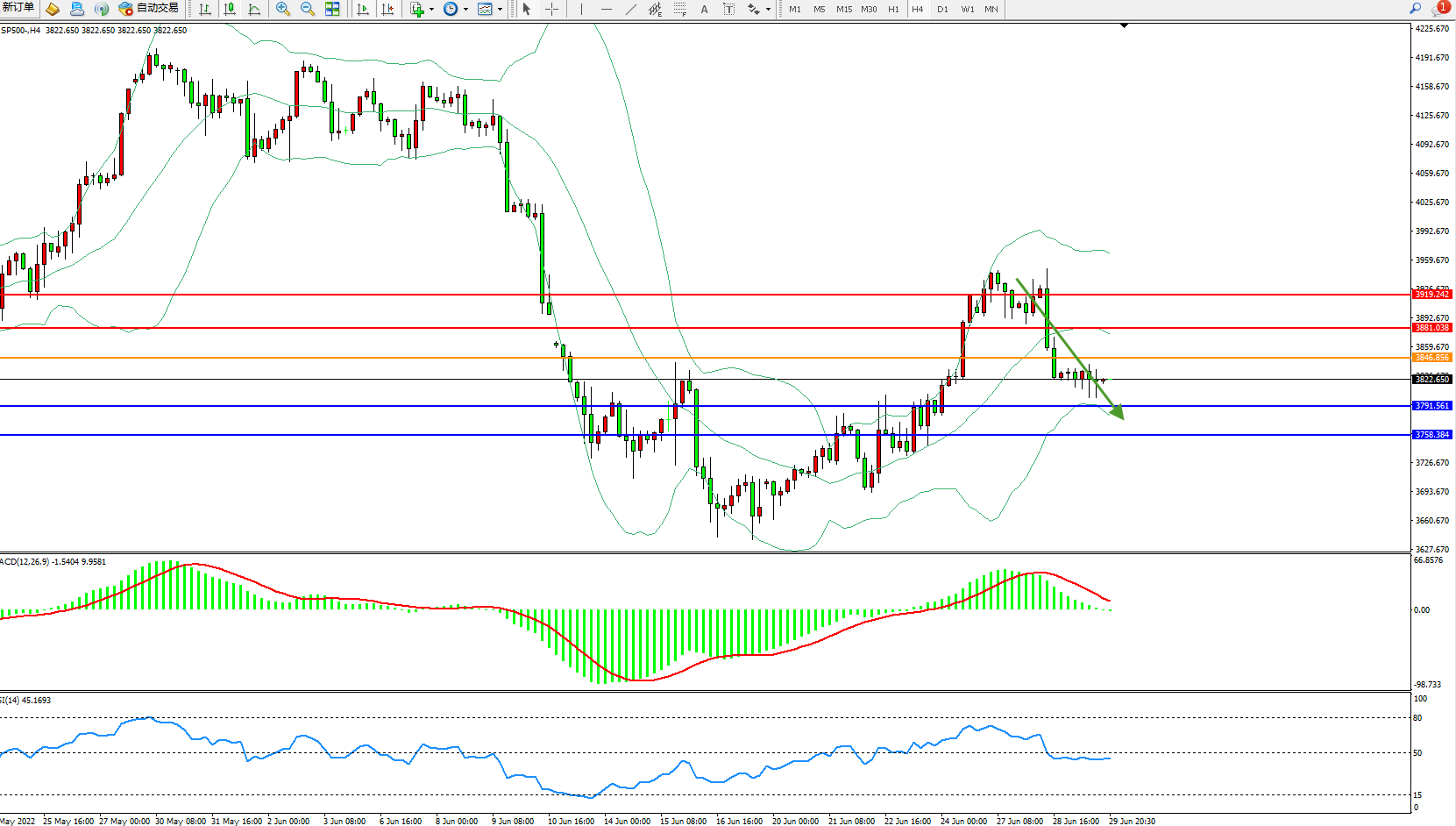 标普500指数6月29日(周三)收盘下跌2.72点,跌幅0.07%,报3818.83点;美联储正在“迅速”加息,力争尽快进入限制经济增长的领域。相信经济会避免衰退,其警告说,如果不解决高通胀问题且听任其持续下去,将给经济带来更大痛苦。