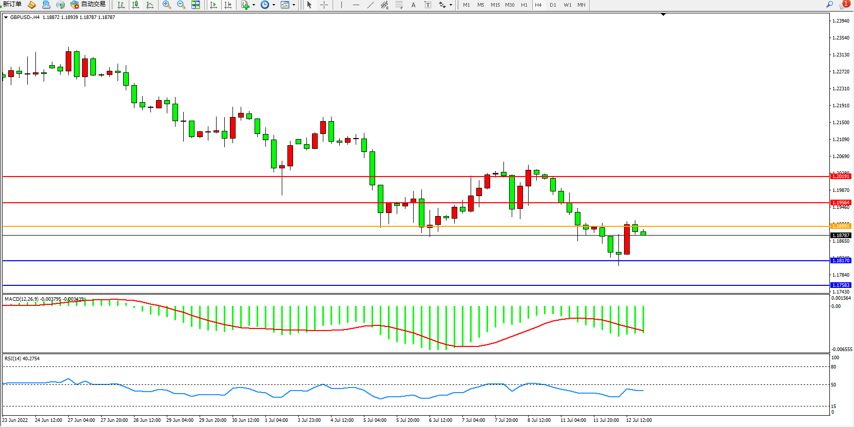 英镑美元GBPUSD ——4小时K线图显示: