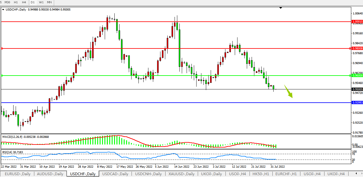 USDCHF:延续流畅下行