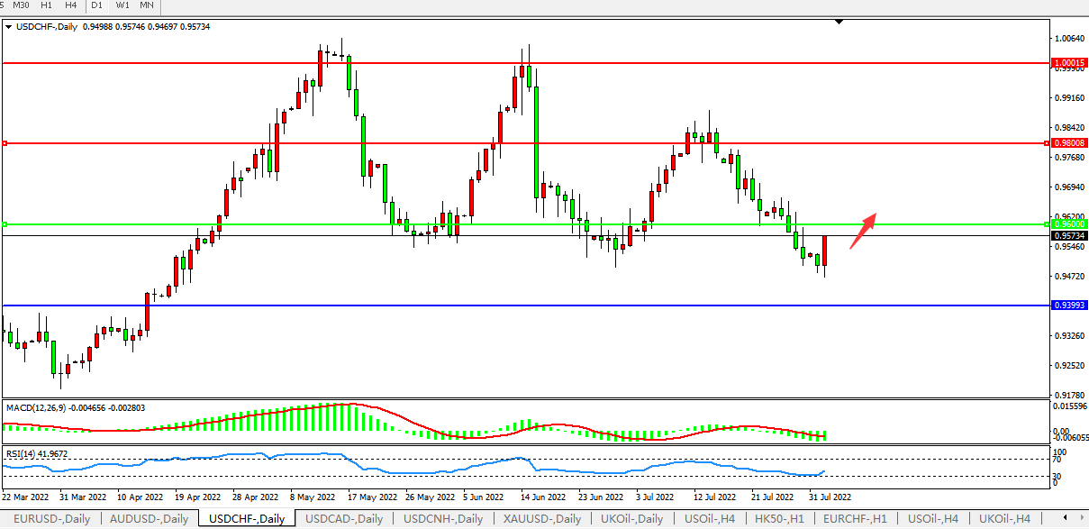 USDCHF:短线止跌,料将小幅反弹 USDCHF  USDCAD