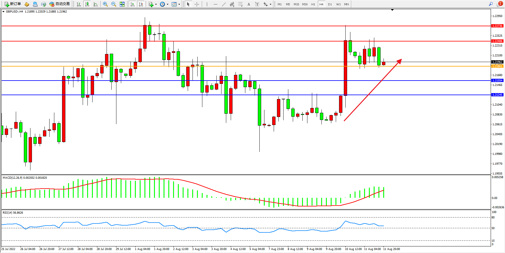 英镑美元GBPUSD ——4小时K线图显示: