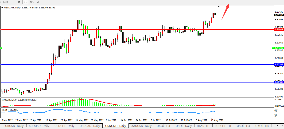 阻力位:6.7600 6.8870 7.0000