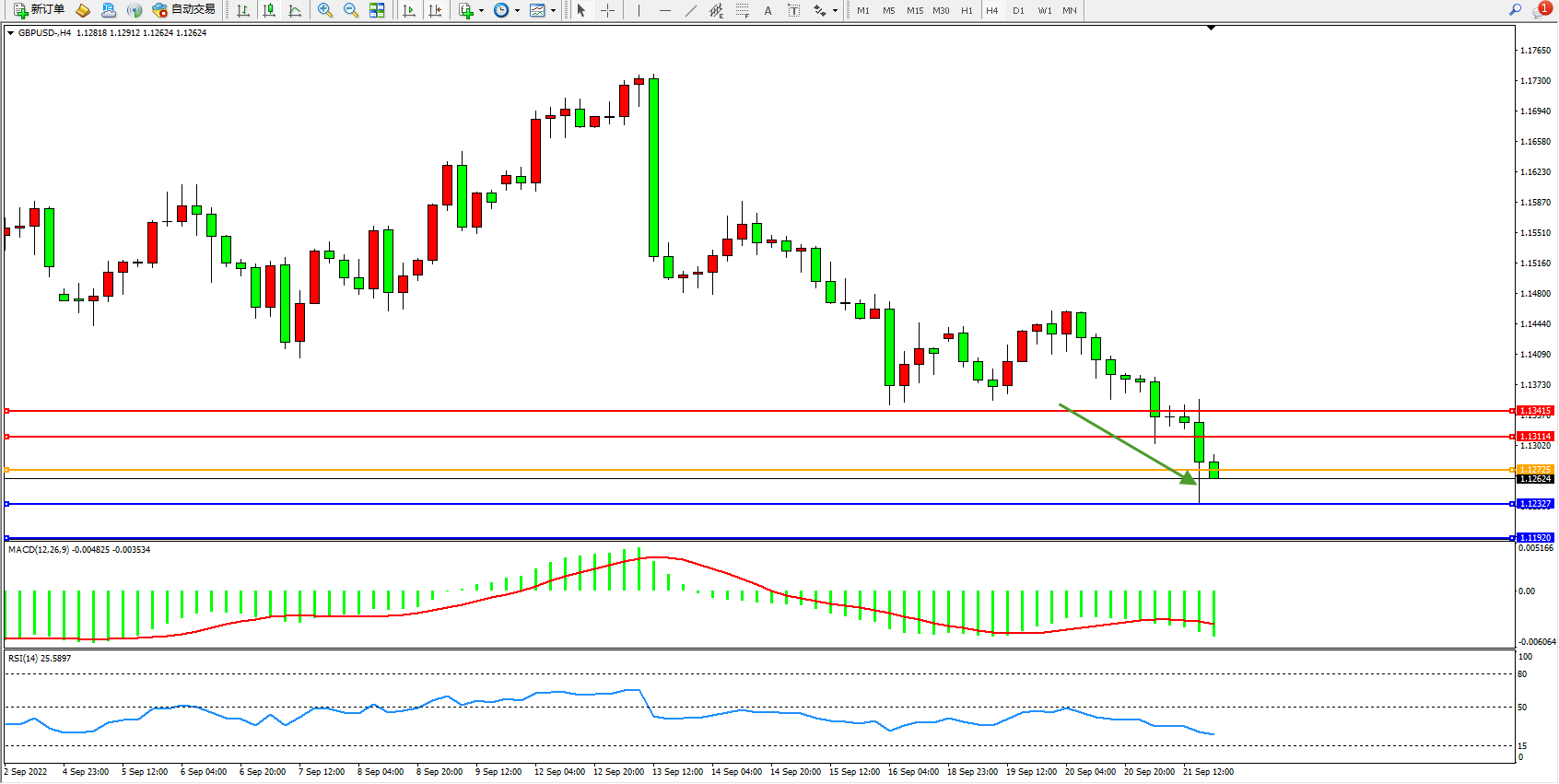 英镑美元GBPUSD ——4小时K线图显示: