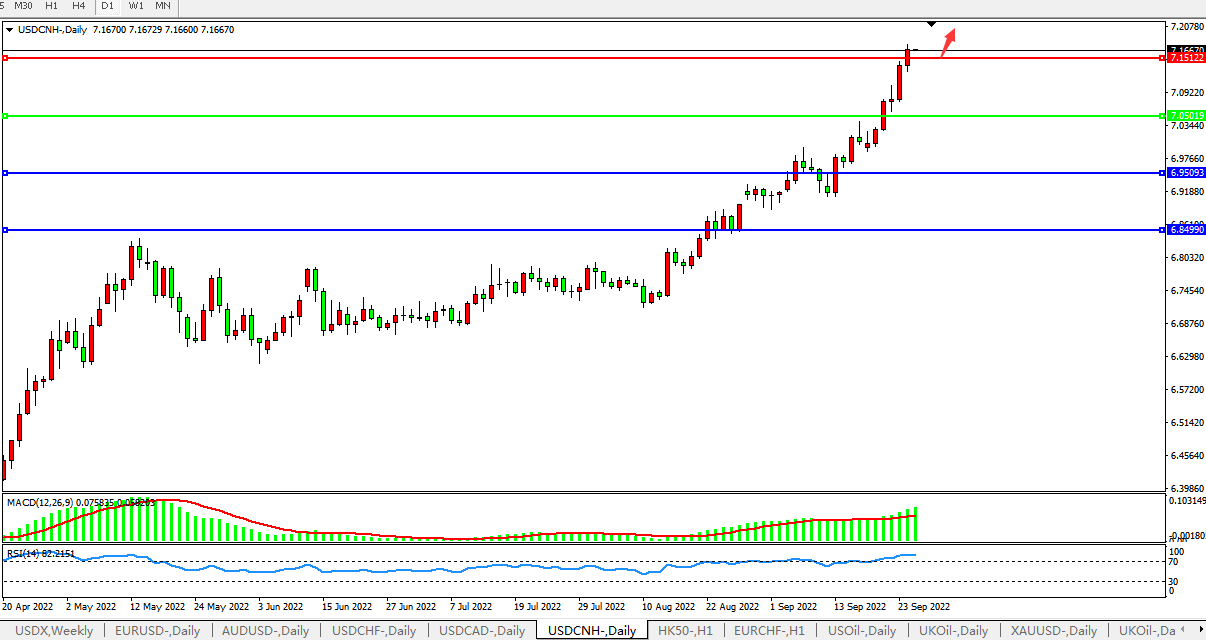 美元人民币USDCNH 日线图: