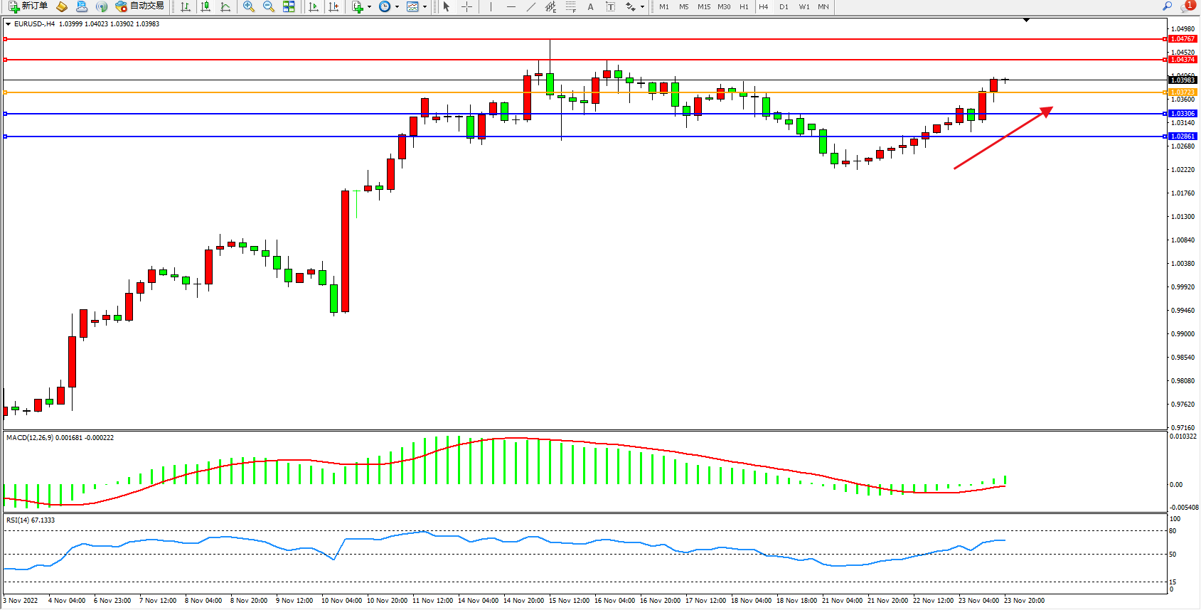 欧元兑美元维持1.03983附近震荡,欧元区几乎肯定正进入衰退,但欧洲央行12月料仍将继续收紧政策,将存款利率提高50个基点,因担心物价的快速上涨将变得根深蒂固。