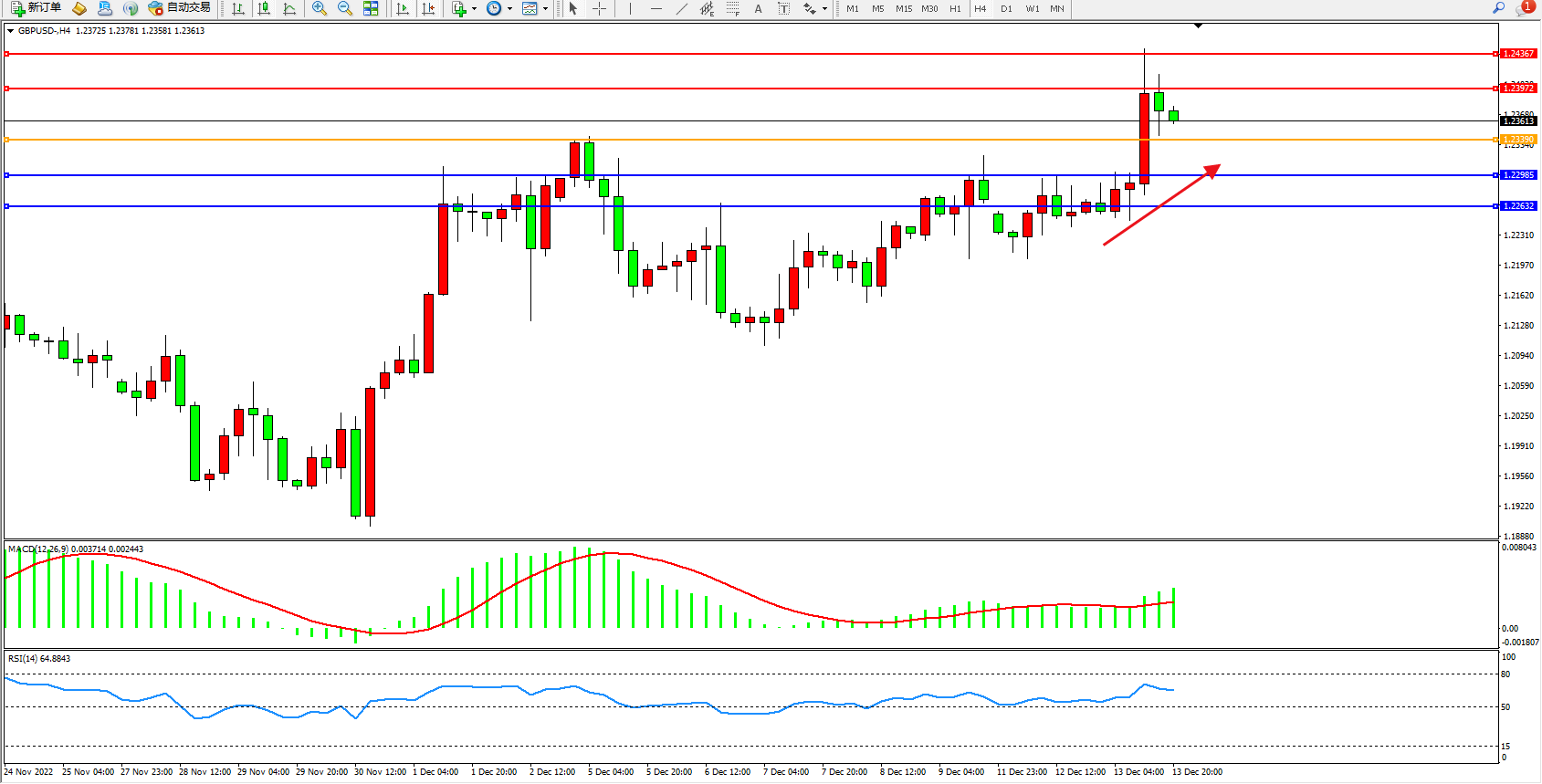 英镑美元GBPUSD ——4小时K线图显示:
