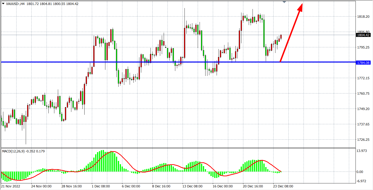 交易策略:在1784.00之上看涨,目标1805.00         1825.00