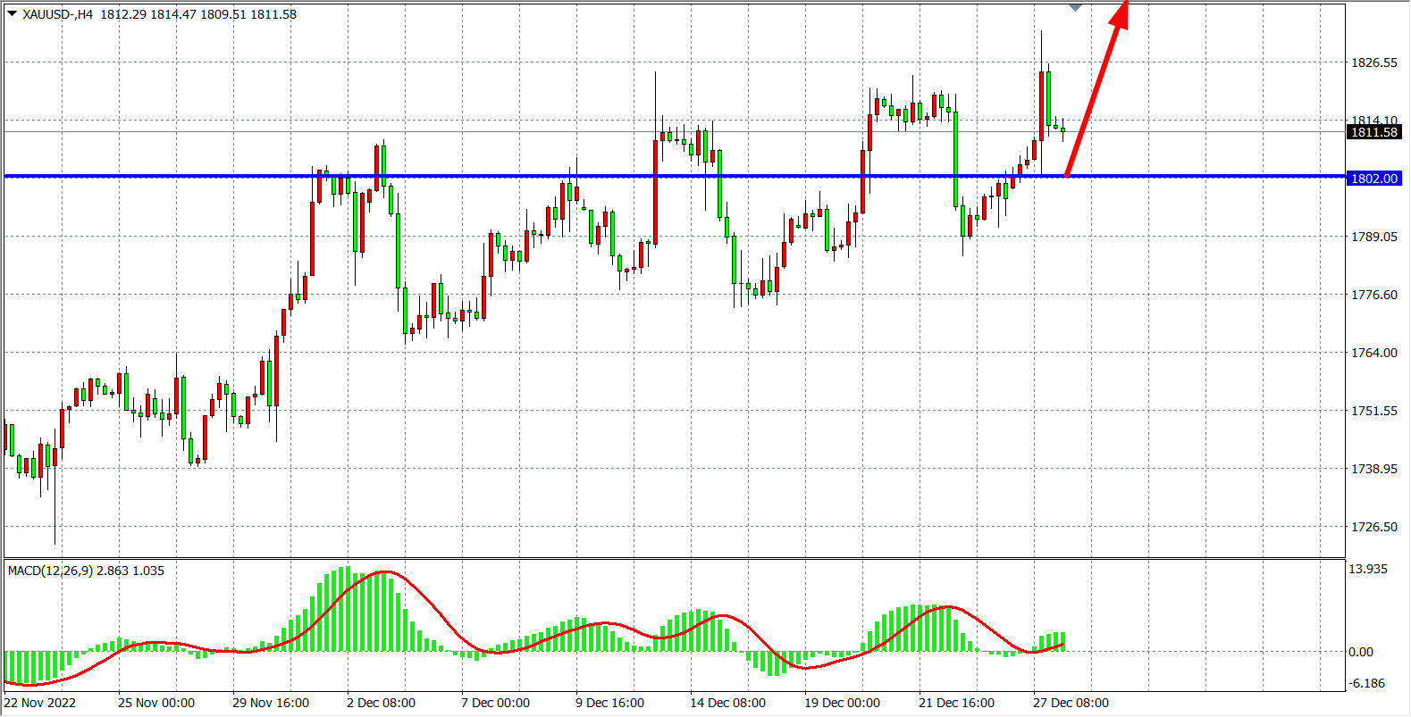 交易策略:在1802.00之上看涨,目标1820.00         1835.00