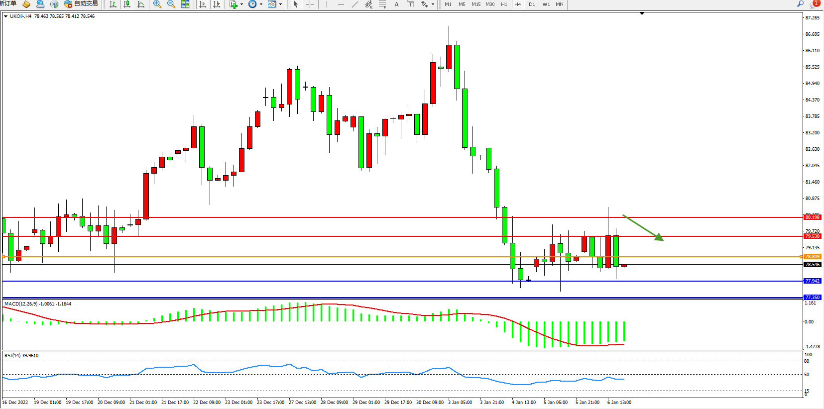 交易策略:78.809下方看跌,目标77.942、77.350