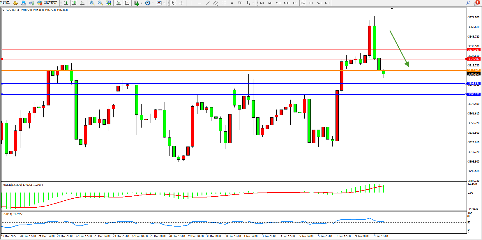 标普SP500——4小时K线图显示: