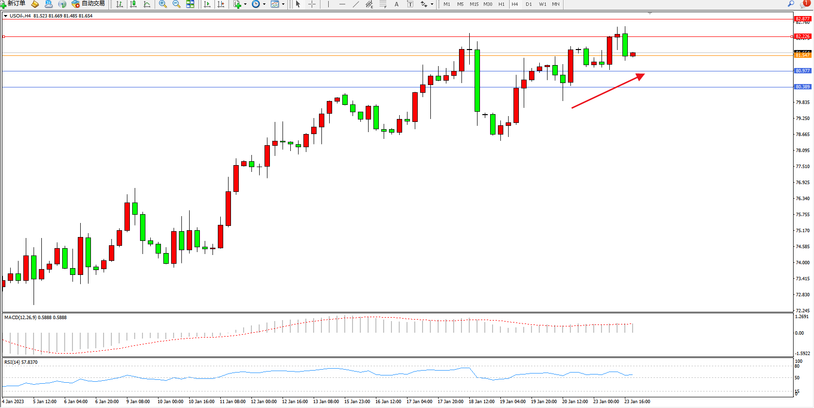 原油USOil——4小时K线图显示: