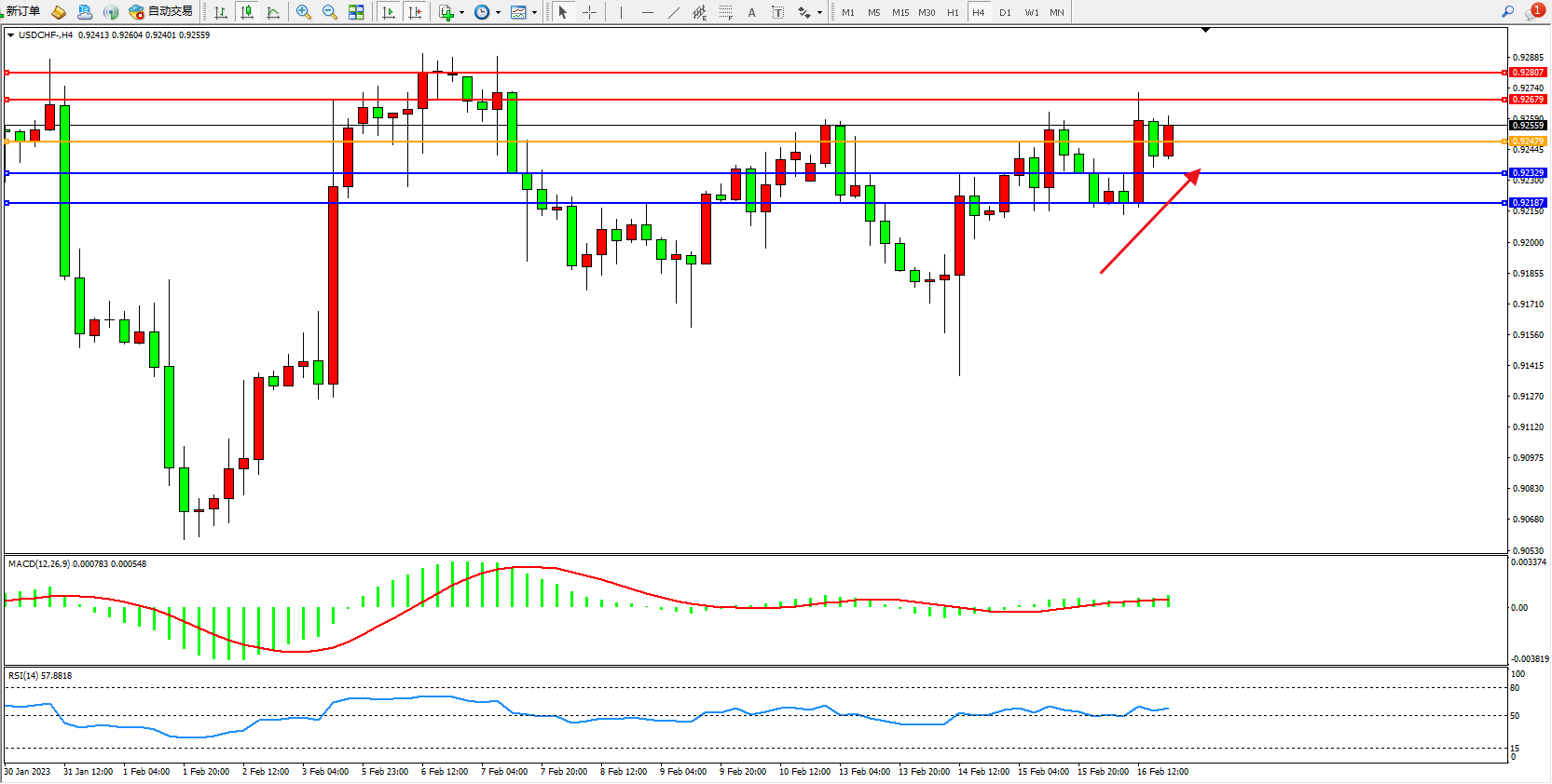 4小时图看:高位短暂震荡,首次看涨情绪开始涌现,MACD指标处于0轴线上側徘徊,RSI指标处于50均衡线上側弱势整理;