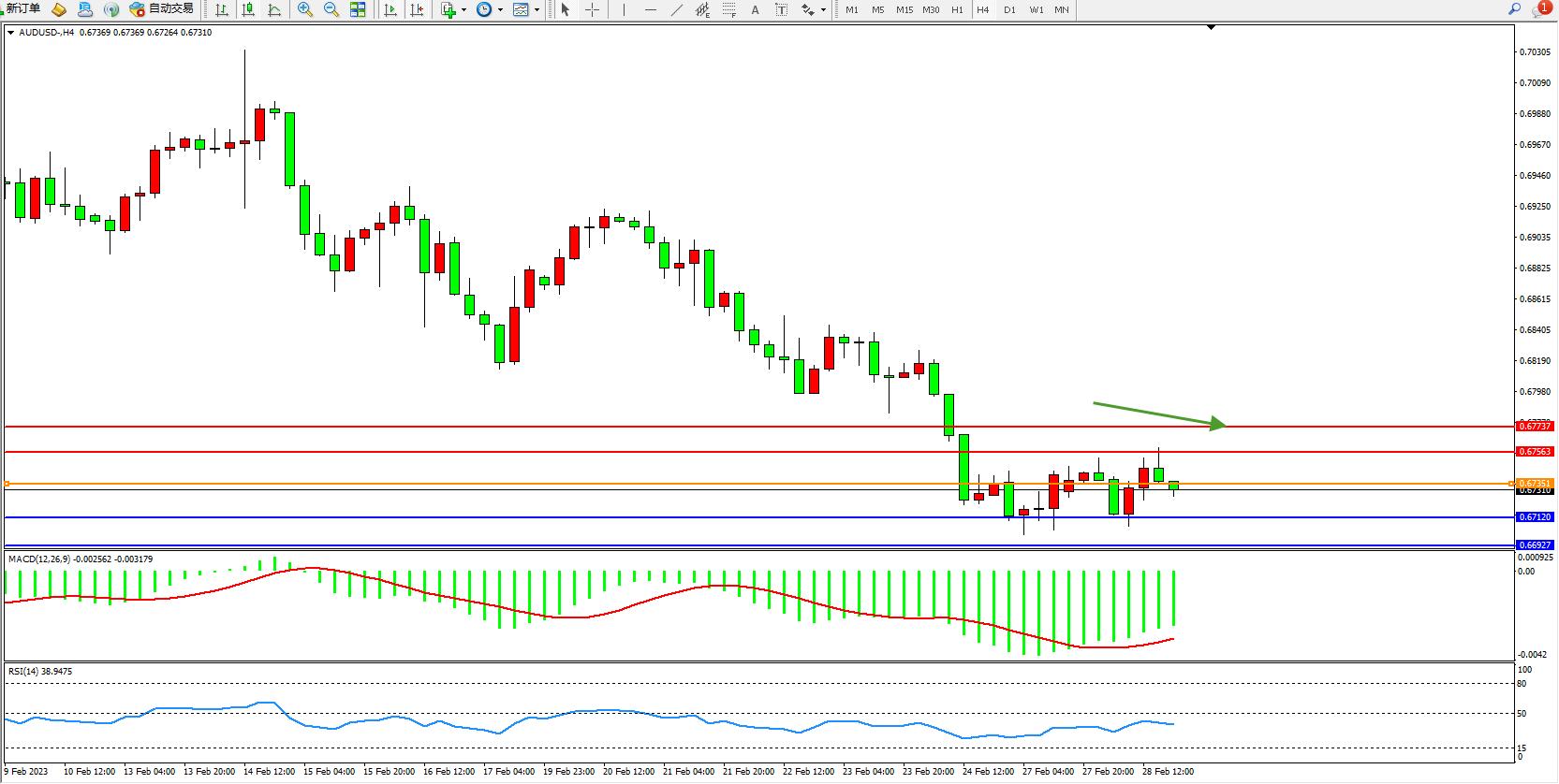 备选策略:0.67351上方看涨,目标0.67563、0.67737