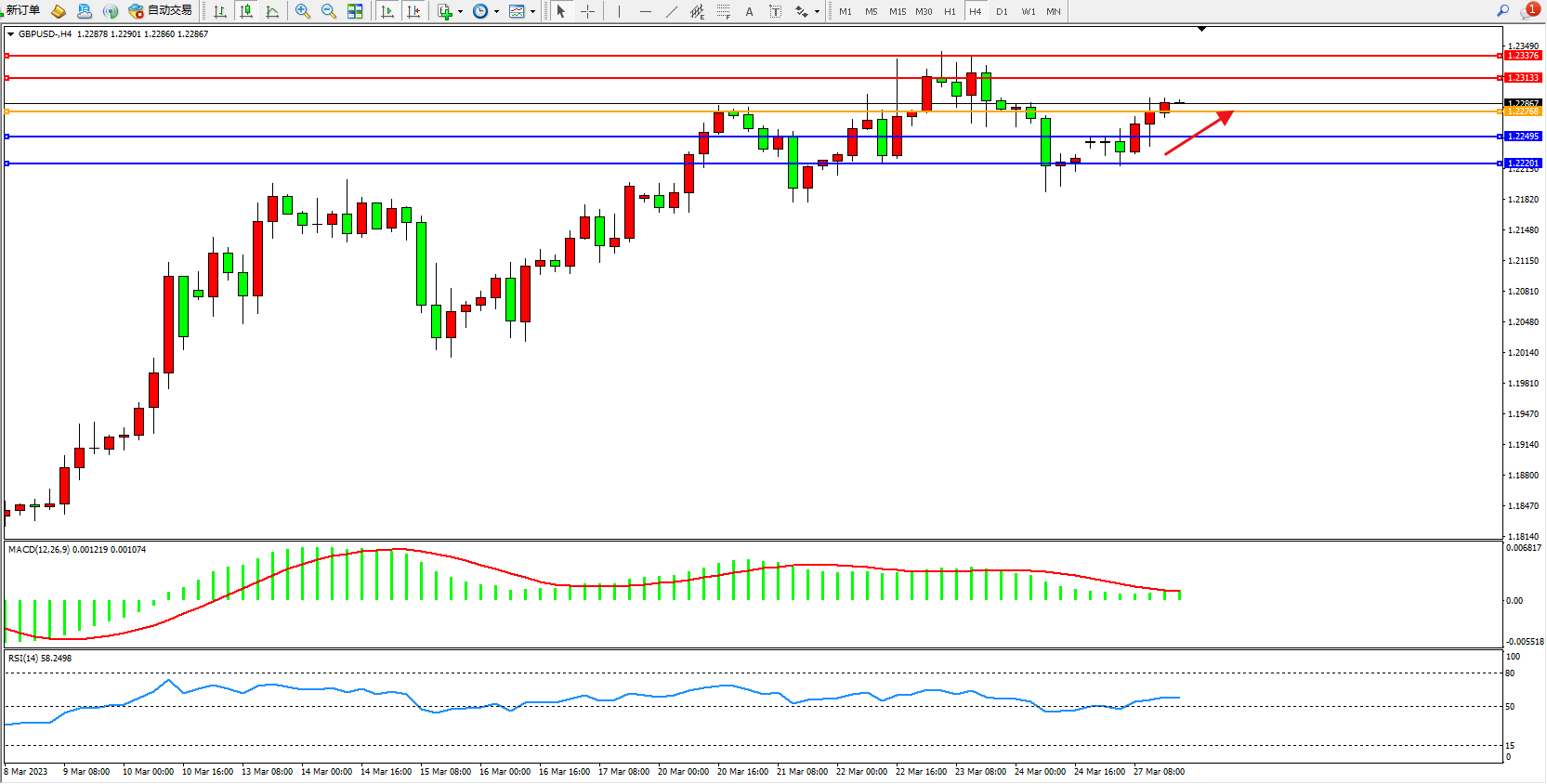 英镑美元GBPUSD ——4小时K线图显示: