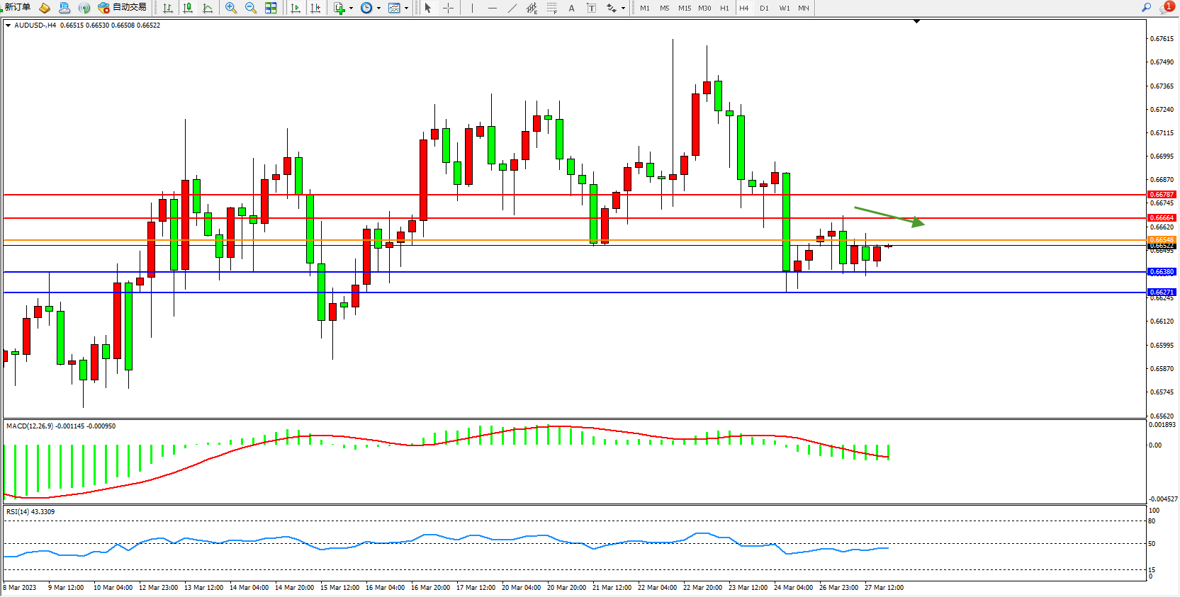 交易策略:0.66548下方看跌,目标0.66380  0.66271