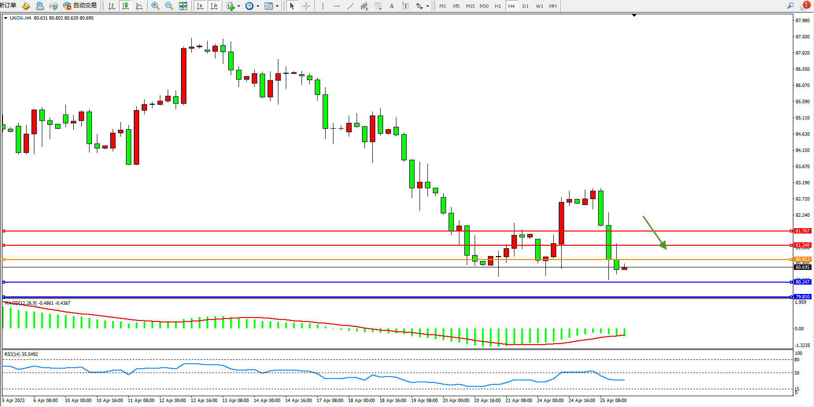 交易策略:80.913下方看跌,目标80.247 79.810