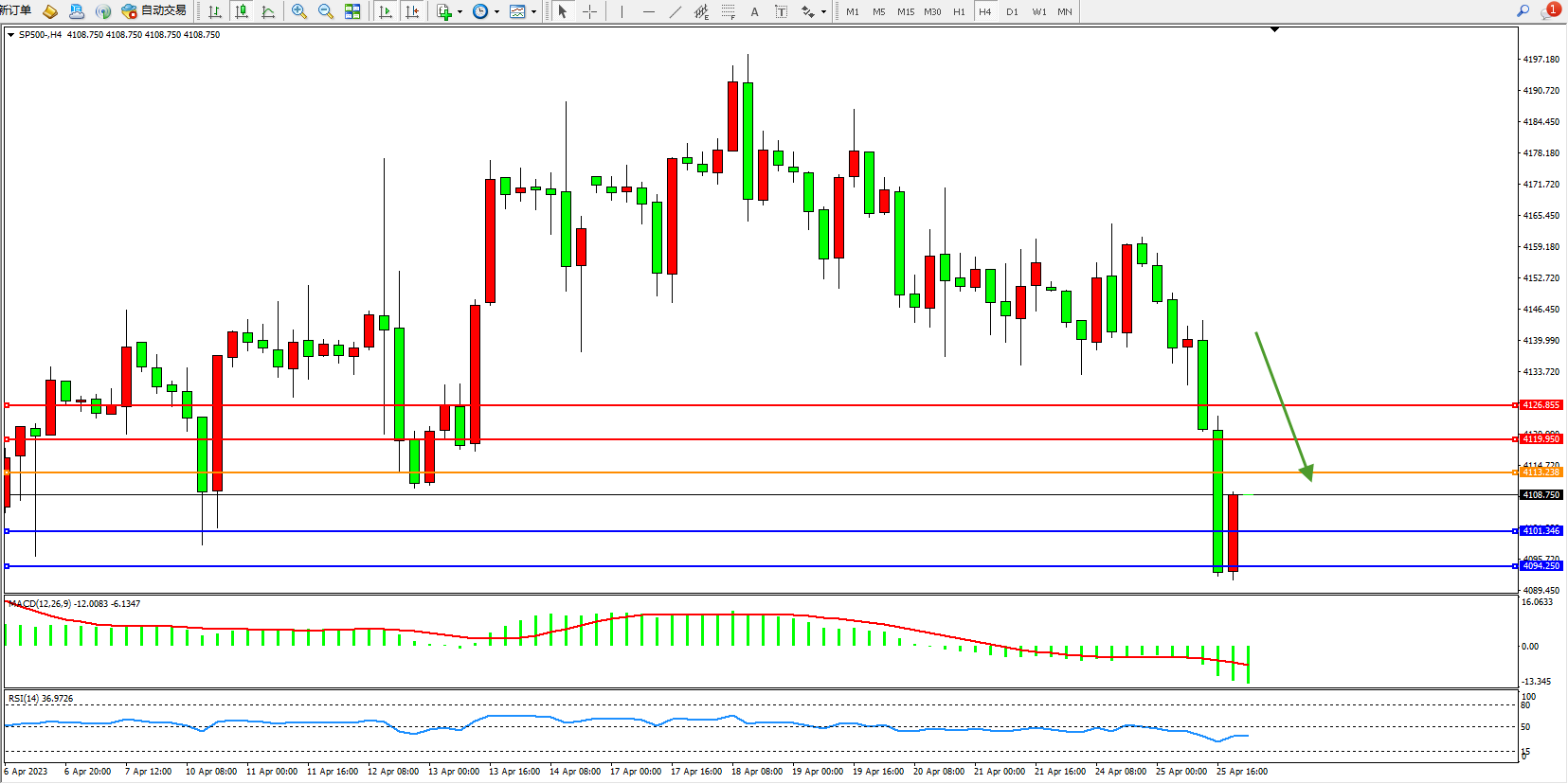 标普SP500——4小时K线图显示: