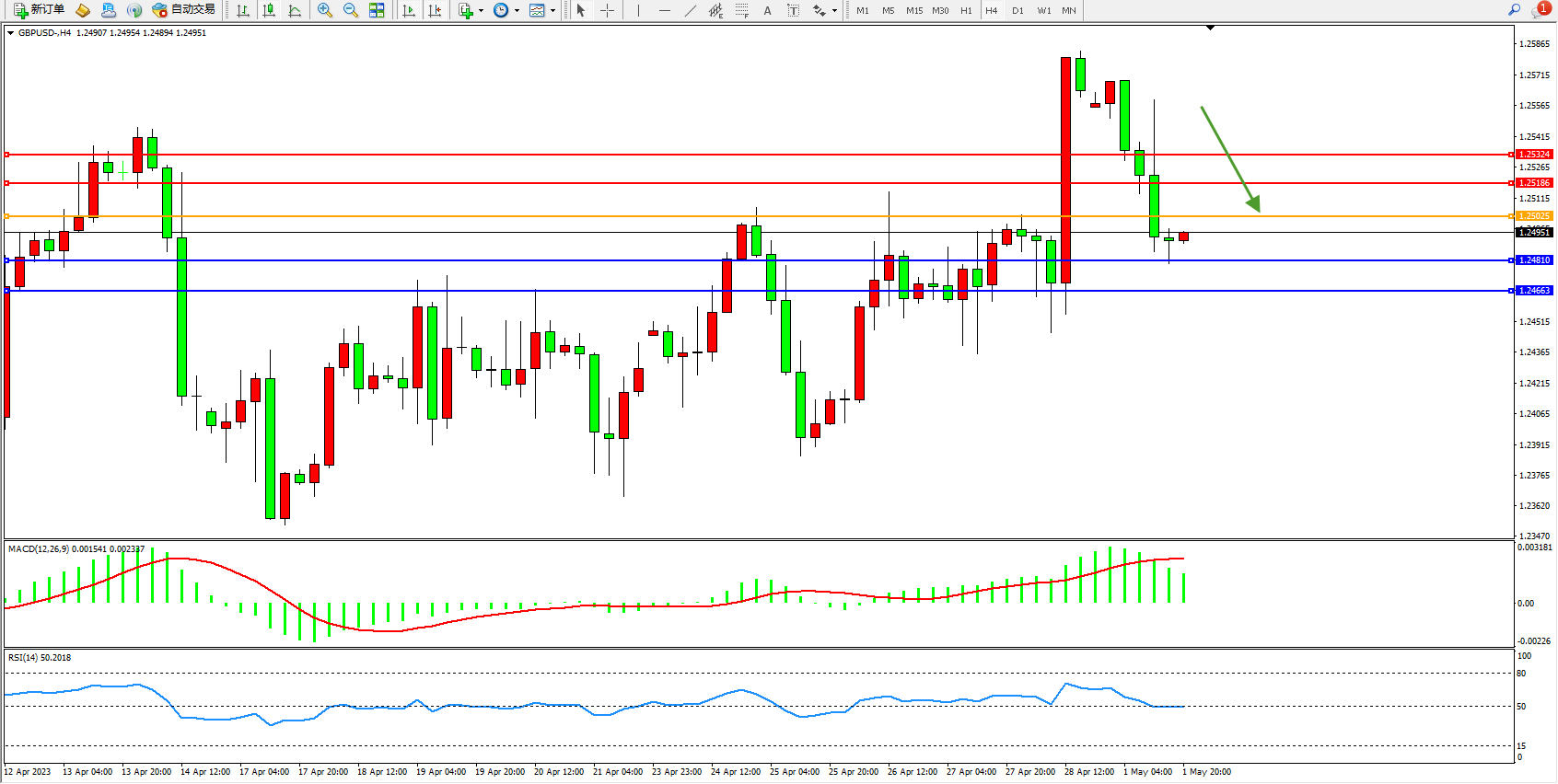 英镑美元GBPUSD ——4小时K线图显示:
