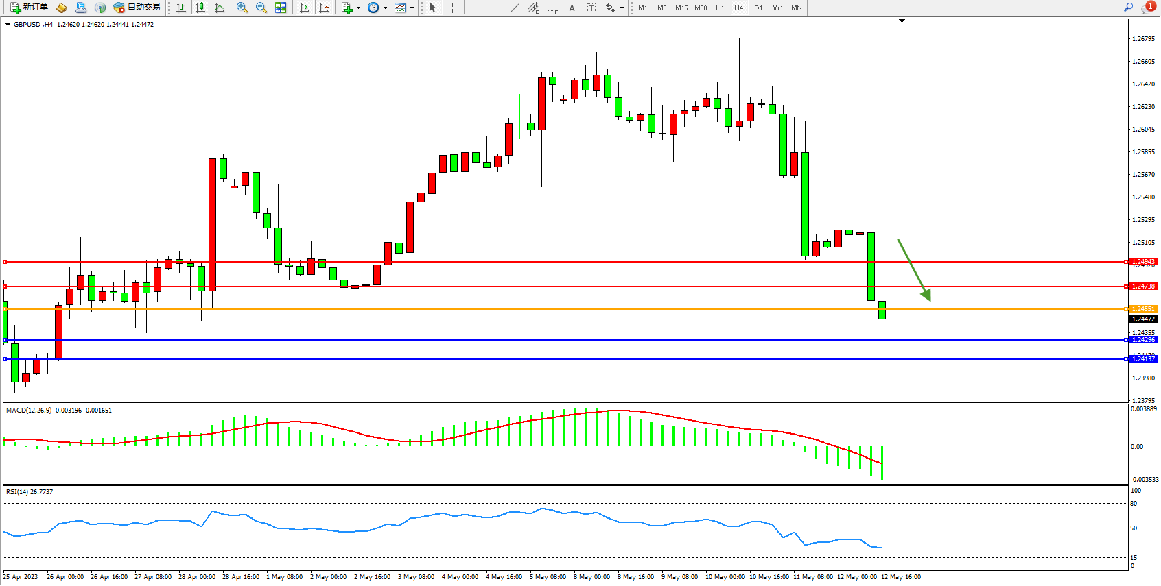 英镑美元GBPUSD ——4小时K线图显示: