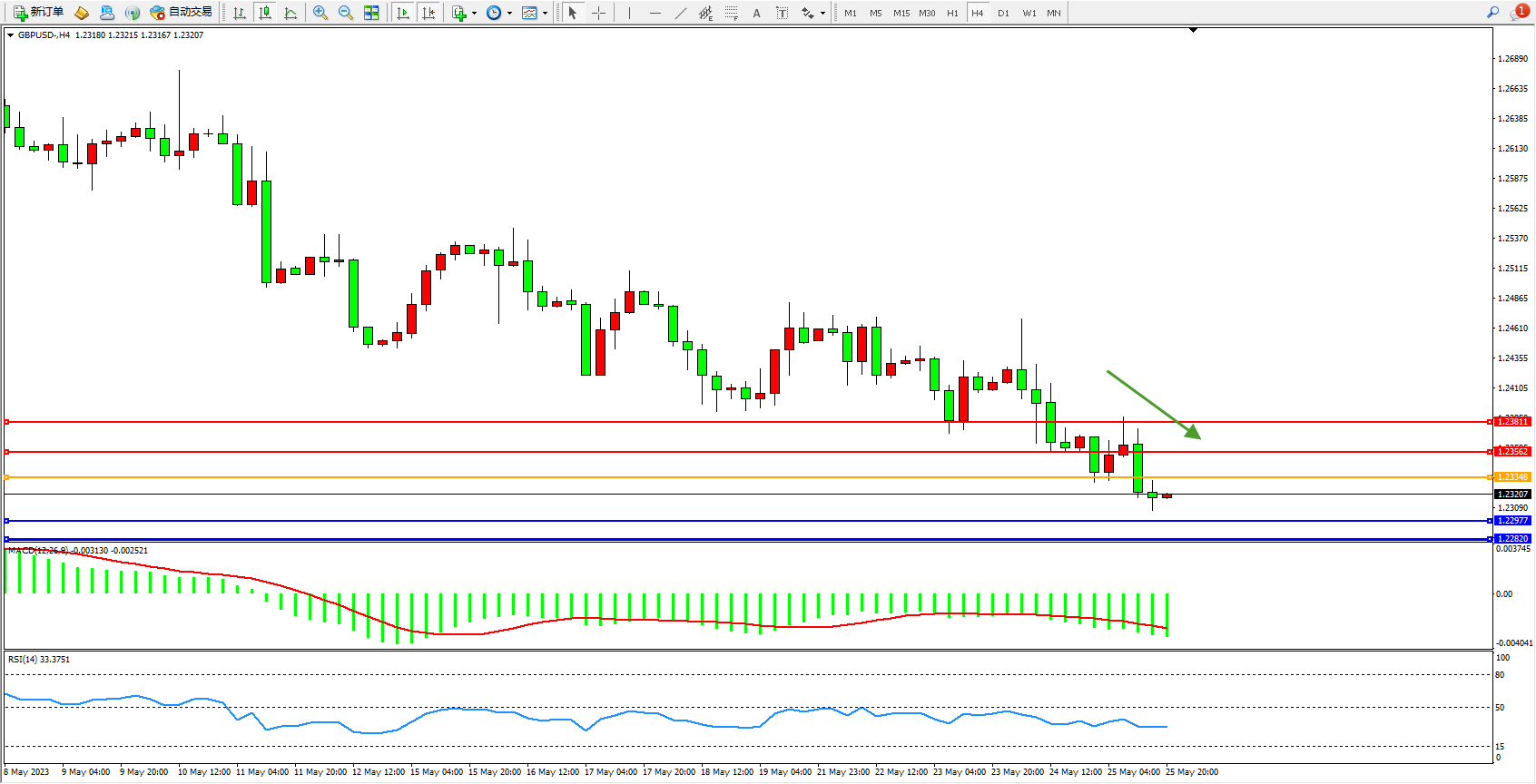 交易策略:1.23348下方看跌,目标1.22977 1.22820